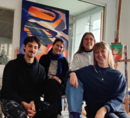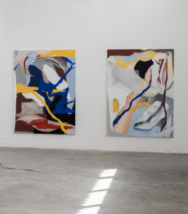 Elle s’inspire de son quotidien afin de créer des portraits, paysages et natures mortes par le biais d’aplats colorés. La correspondance entre les différentes formes et leurs répétitions créent un dialogue entre ses peintures, explorant ainsi la relation entre la figuration et l’abstraction.